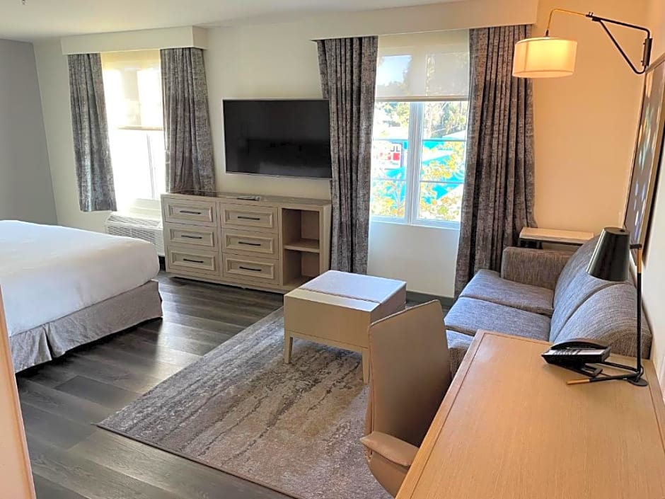 Relax in our spacious 312 sqft King Room with Sofa Bed, perfect for up to 3 adults and 2 children. Enjoy modern amenities like a flat-screen TV, microwave, and refrigerator for a comfortable stay.