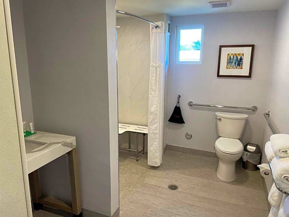 Discover our spacious King Room with Accessibility Tub, perfect for 2 adults and 1 child. Enjoy a comfortable stay with a private bathroom, microwave, flat-screen TV, and other modern amenities.